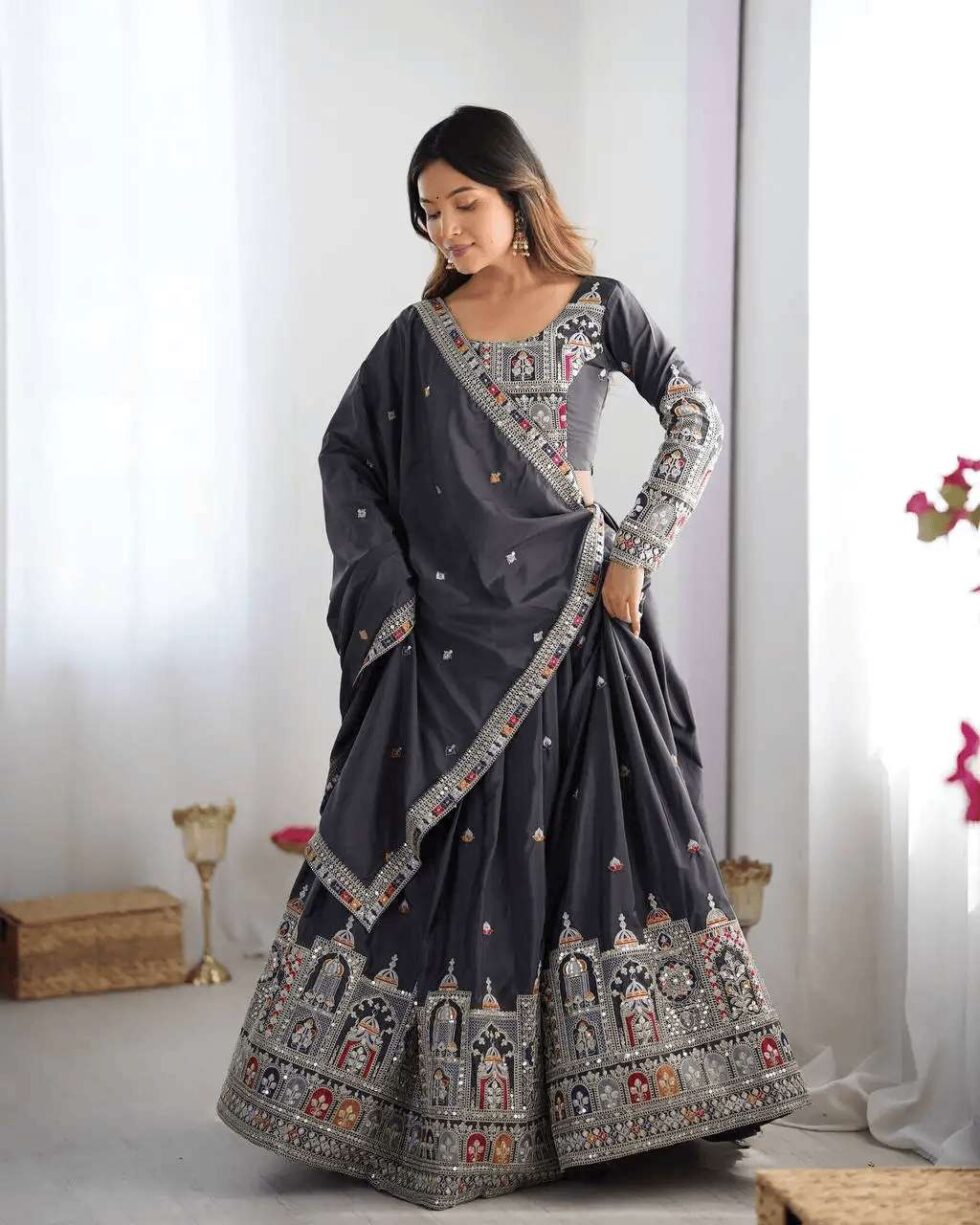 Be the first to review “Women’s Crepe Silk Sequence Embroidery and Zari Work Rajsthani Lehenga Choli with Dupatta”